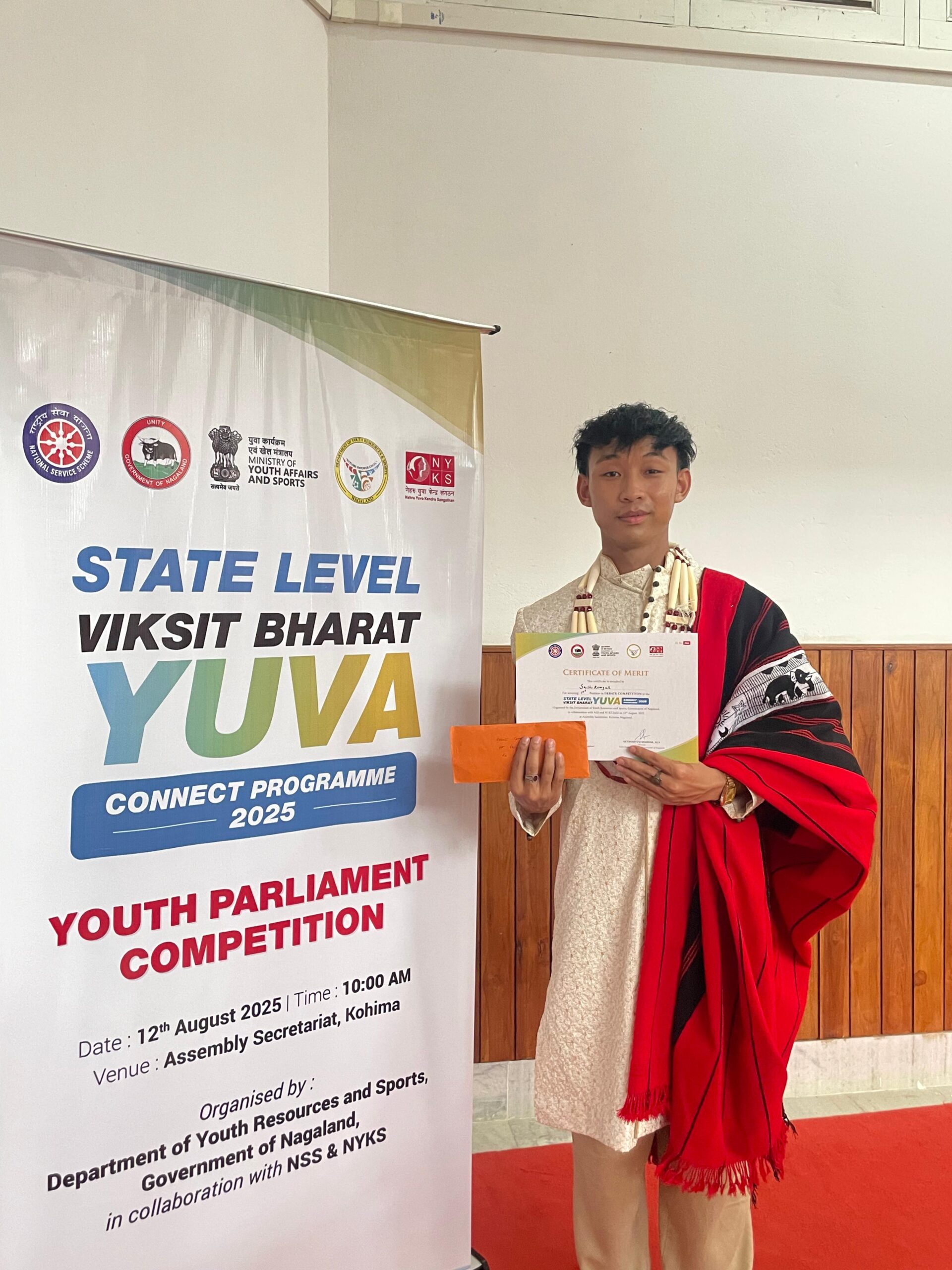 Sashikumzuk Longkumer, BA 3rd Semester, secures 1st position in the State Level Viksit Bharat Yuva Connect Programme 2025 Debate Competition held in Kohima