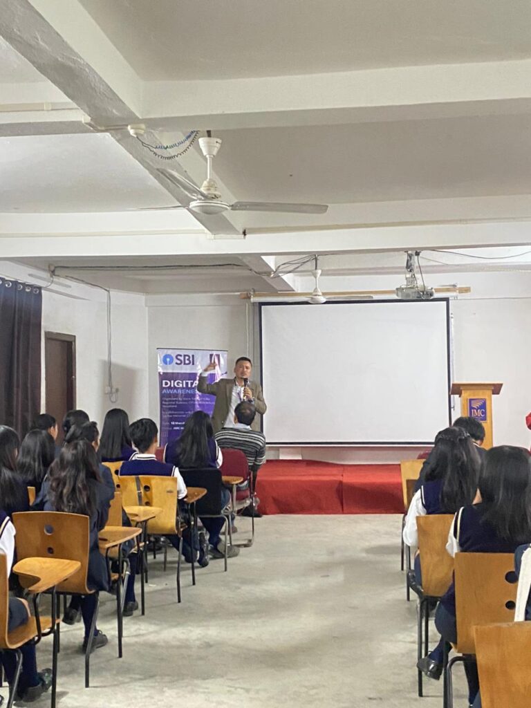The program aimed to promote awareness about digital banking services and educate students and citizens about safe digital practices. Mr Imtitoshi, Branch Manager, Alongmen Branch, Mokokchung, who attended as the resource person from SBI, delivered an informative session highlighting the various digital banking services provided by the bank. He explained the benefits and convenience of SBI’s digital platforms and encouraged students to adopt secure digital transactions.