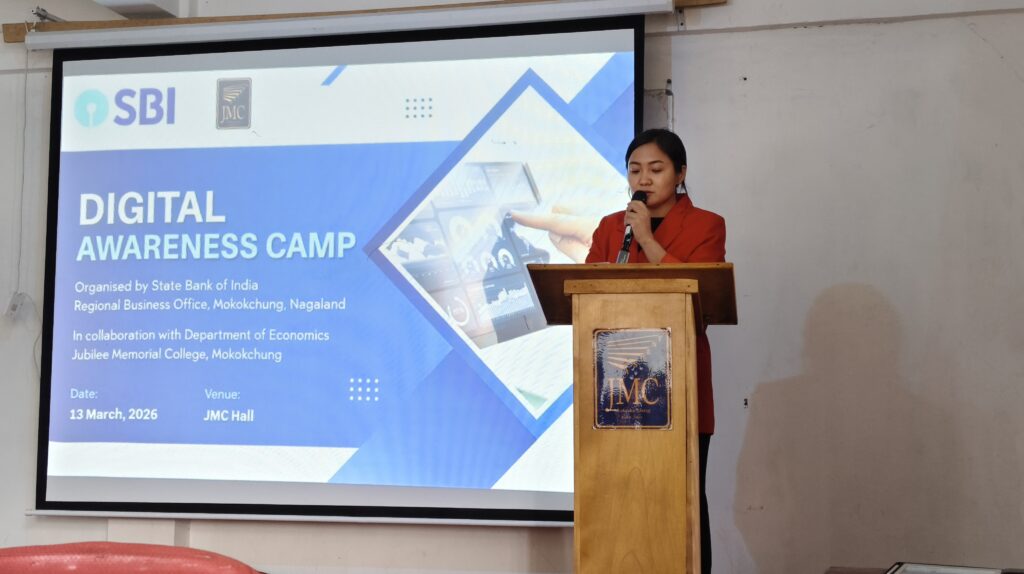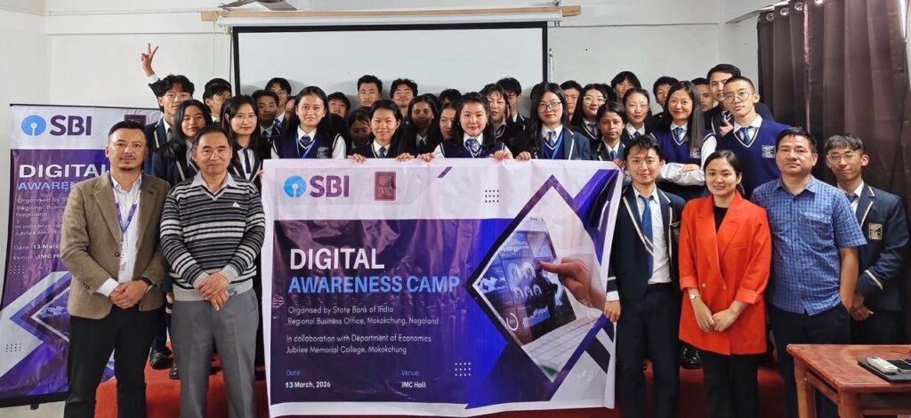 A Digital Awareness Camp was successfully organized by the State Bank of India (SBI), Regional Business Office Mokokchung, in collaboration with the Department of Economics, Jubilee Memorial College (JMC), Mokokchung on March 13, 2026 at the JMC Hall.